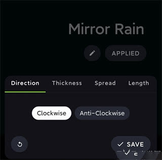 3、一开始它会显示一个叫做Mirror Rain的效果,这个不用钱,如果你想改跑马灯的方向,就点编辑,然后选Direction,Clockwise就是往右转,Anti-Clockwise就是往左转。