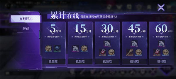3、累计在线: 每天累计在线达到一定时长可领取免费体力奖励等。