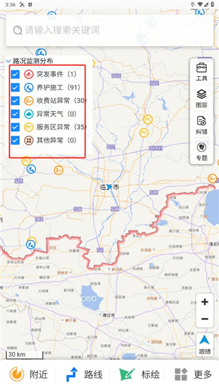 2、通过路况功能你可以查看到山东省各条道路的路况信息,规划好线路