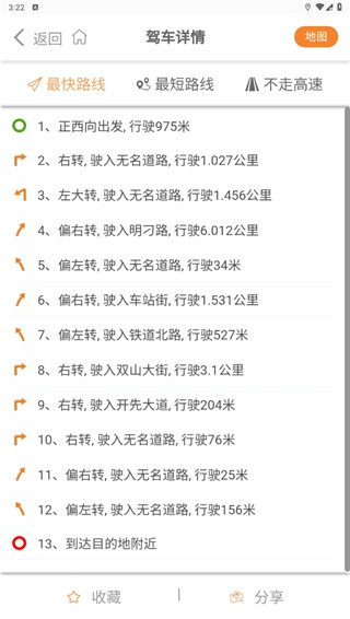 4、软件会推荐多条不同的线路,点击后在这里可以看到详细的导航规划