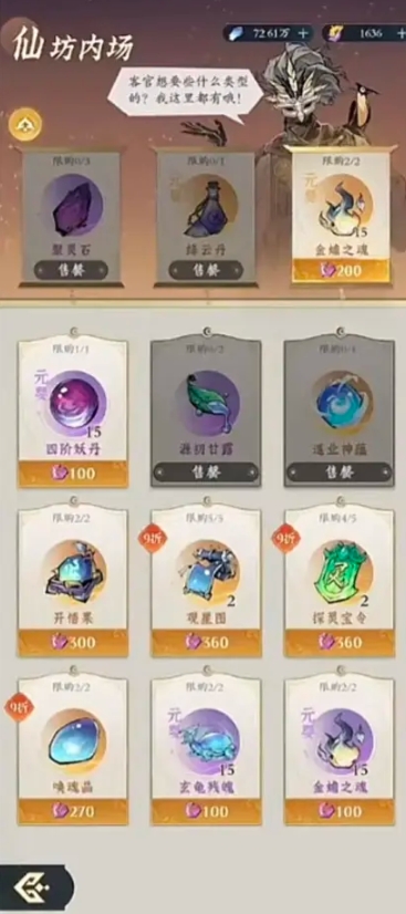 仙坊内场消费1500仙玉即可解锁,解锁后即可购买1折聚灵石(强烈推荐)。内场解锁进度不会重置,建议一次性解锁。突破境界后,坊市和仙坊外场会自动免费刷新,记得在突破前采购所需资源