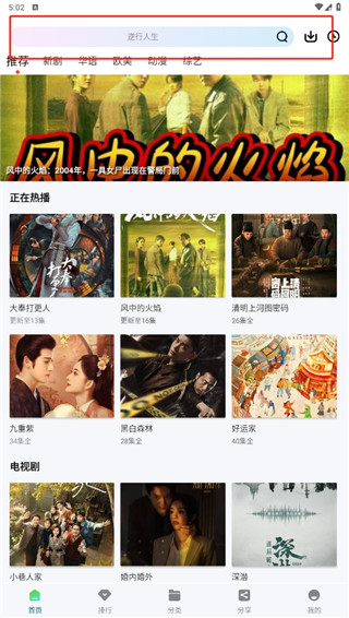 1、打开本站下载的软件,通过上分的搜索功能来查找需要投屏的影视