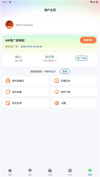 4、在我的界面中,可以看到观看历史、我的收藏、我的下载等信息