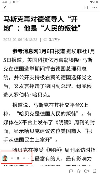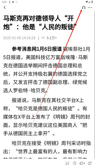 2、选择好新闻资讯后,在阅读界面中点击右上角的耳机图标