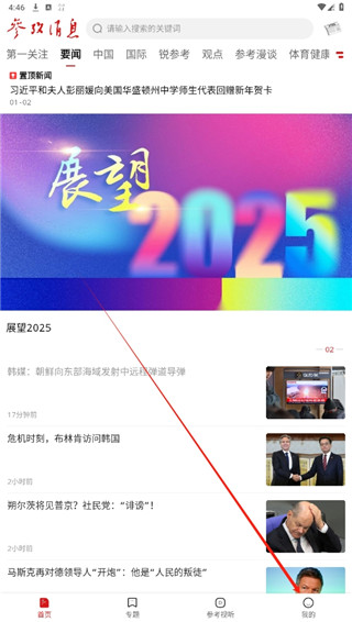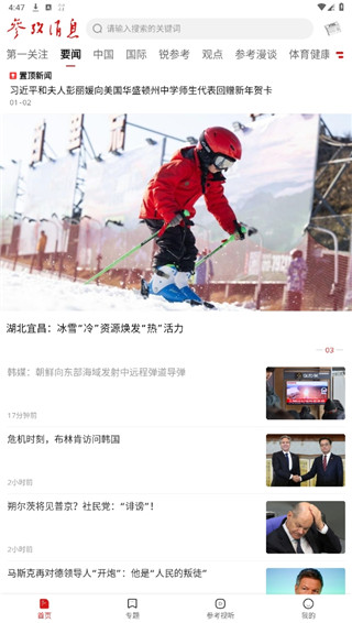 1、在参考消息app中,通过输入关键字找到自己需要听的新闻资讯