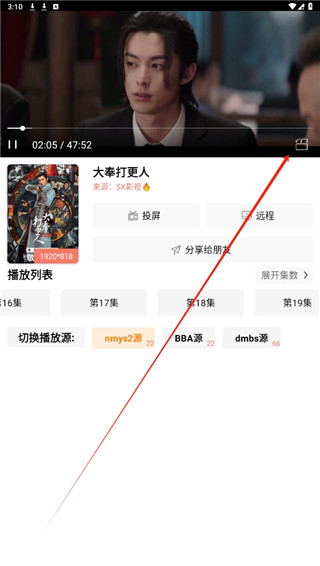 3、在播放界面中,点击下方的投屏按钮