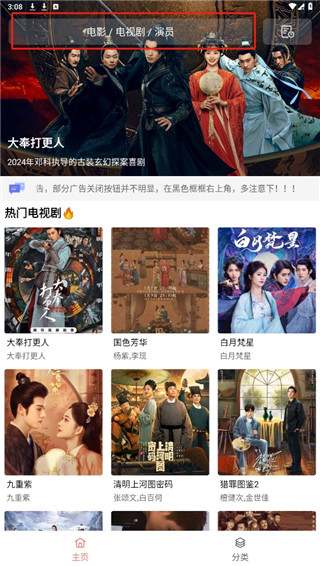 1、打开下载好的app,通过上方的搜搜功能找到需要投屏的影视