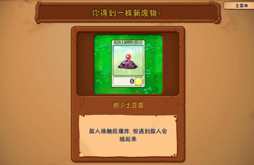 2、胆小土豆雷:看似最鸡肋的植物,实则最有用(种在僵尸脚下直接触发爆炸)