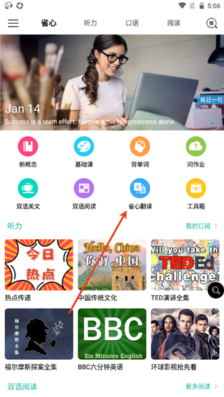 1、在软件的首页,找到省心翻译点击进入