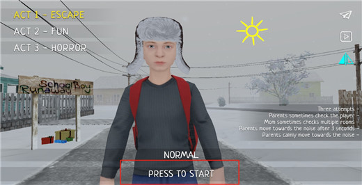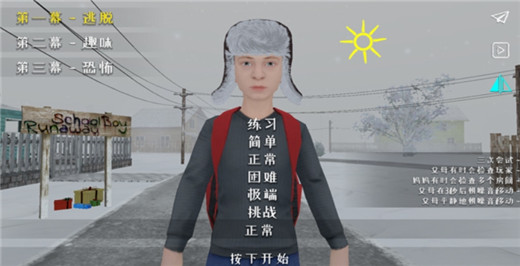 逃跑男孩中文版是一款非常有趣的解谜逃脱手游,在这里你将扮演以为成绩不好的学生,因此被父母惩罚软禁在家中,而你则需要发挥自己的聪明才智,尝试在不被父母发现的情况下载逃出家中和朋友们玩耍。游戏的玩法非常简单,以第一人称视角体验,玩家需要在家中选择钥匙开门,躲避父母的巡逻逃出去即可获得胜利。小编建议大家佩戴耳机游玩,这样不仅可以增加游戏的沉浸感还是可以更好的辨别父母的方位,避免被父母抓到。此外逃跑男孩中文版提供了多种难度供玩家选择,其中有简单、正常、困难、极端等,玩家可以随意选择,游戏不会社任何的限制。感兴趣的小伙伴快来本站下载游戏,帮助男孩逃出去和朋友一起玩耍吧。