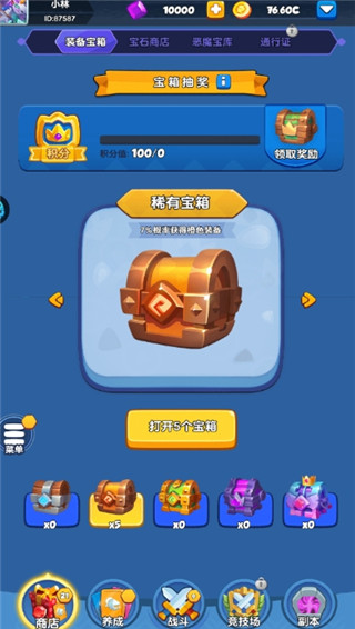 7、通关能获得不同品质的宝箱,品质越高开出的装备就越好。