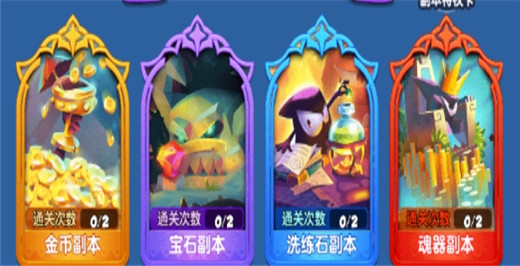 6、共有四个日常副本,分别是金币副本、宝石副本、装备洗练石副本和魂器副本,每天默认有两次挑战次数。
