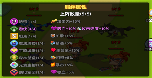 3、当上阵相同的属性角色数量达到要求时可以解锁羁绊属性。
