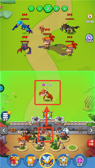 1、进入游戏首先需要战斗,拖动需要上阵的兵种到绿色区域,位置没有固定,可以根据敌方角色或者阵型进行放置,最多放置5个单位。