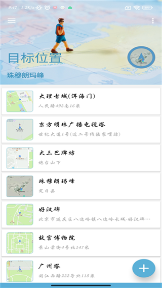 1、进入摩尼定位app后,其实模拟定位非常简单,你可以用预设好了的地址,也能点击右下方+添加地址