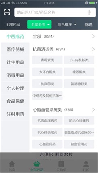 5、智能分类筛选,用户可以通过系统的分类筛选功能快速的查找自己想要采购的药品;