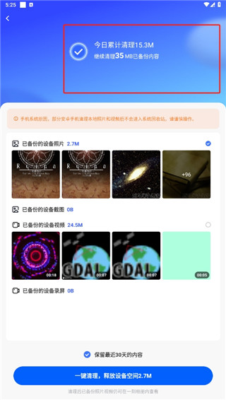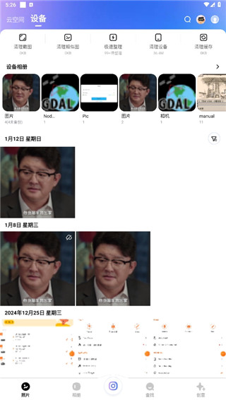 2、小编这里选择清理设备选项,选择你需要清理的照片,点击下方的一键清理
