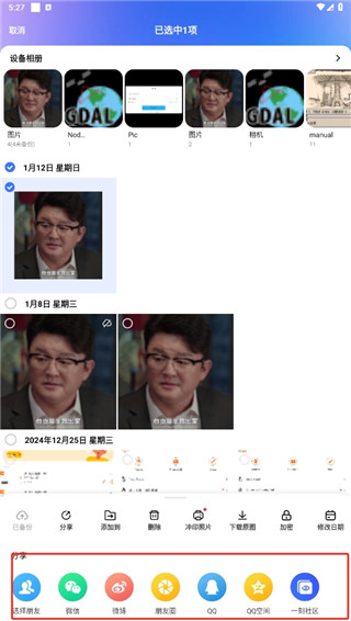 2、随后下方会出现一个菜单栏,选择你需要分享的平台点击