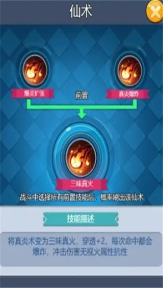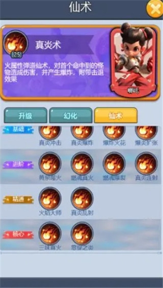 技能介绍-真炎术:火属性弹道仙术,对首个命中的怪物造成伤害,并产生爆炸,附带击退效果。