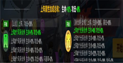 2、不同的系别之间会相互克制,上阵同一系别的伙伴会有相应的加成效果,共有五种系别,分别是水系、风系、火系、光系和暗系。