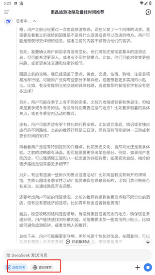 3、点击下方的深度思考、联网搜索还有不同的回答方式