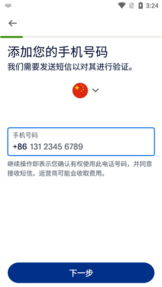 3、输入收到的验证码,如果没有收到的话还能再次发送验证码