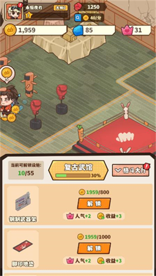 提升人气值可解锁新场馆,升级场馆内的设施和增加人气值;