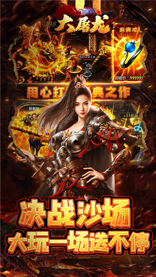 此外在大屠龙手游中还可以领取大量的福利礼物,新手首次登录游戏可以获取高品质的装备,以及炫酷无比的称号装扮,让你能打造专属于你的个性形象,并且游戏内还为大家提供了自动拾取、自动回收功能,玩家可以更加高效的刷怪,快来叫上你的兄弟,尽情的在珐玛大陆冒险吧。