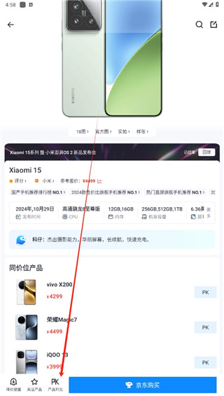 2、在产品的介绍界面中,点击下方的产品对比选项