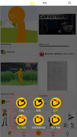 2、软件支持动画、绘画、挂件等不同的创作服务,选择你需要的点击进入