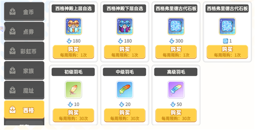 每周神殿通关获得的西格佛里德之魂可在西格商店进行兑换