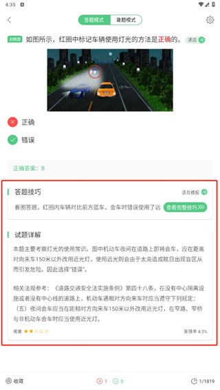 3、进入到答题界面中就可以开始答题了,并且还可以看到题目的详解