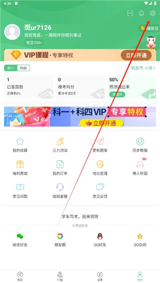 1、打开斑斑驾道定制版app,在我的界面中点击右上角的设置图标