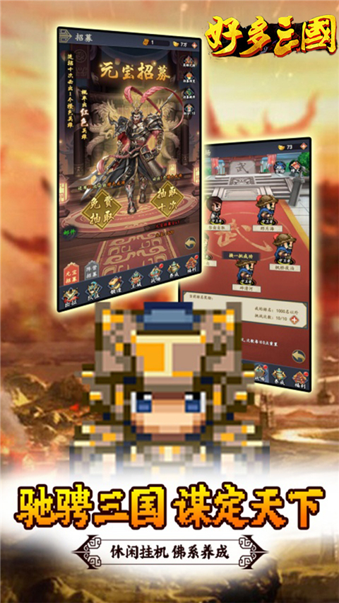 好多三国是一款非常有趣独特的三国策略手游,游戏以三国故事为题材,其精美细腻的画质,为玩家带来一个真实的三国世界。在这里有着数百位三国知名武将,其中有刘关张三兄弟、曹操、吕布等,这些武将都有着各地的技能和特点,玩家可以通过主线关卡、酒馆招募等方式收集这些武将,并根据他们的特点搭配阵容进行战斗,让每一位武将都可以发挥出自己的亮点。