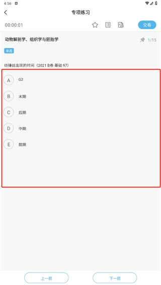 2、点击你需要练习的题目,选择你认为正确的答案进行答题
