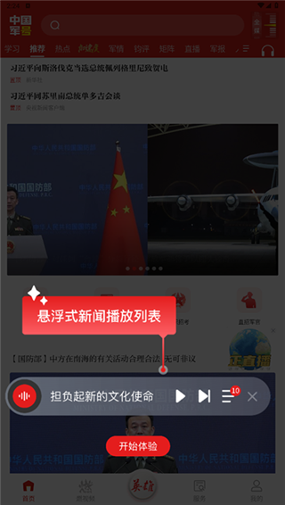 不仅如此,中国军号app还提供了新闻直播服务,用户可以实时观看军事新闻的现场直播,其高清的画面为你带来身临其境的感受。通过弹幕评论还可以和主持人、网友们进行互动,提升对新闻的参与感。对军事感兴趣的朋友快来下载软件,掌握最新的军事新闻吧。