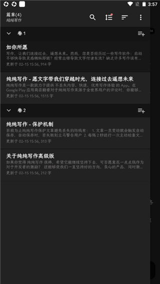 1、纯纯写作app涵盖了超多写作工具可以使用,支持自动备份和查看文章内容。2、这里面有许多写作服务功能都可以使用,支持一键分享和编辑内容发送到应用。