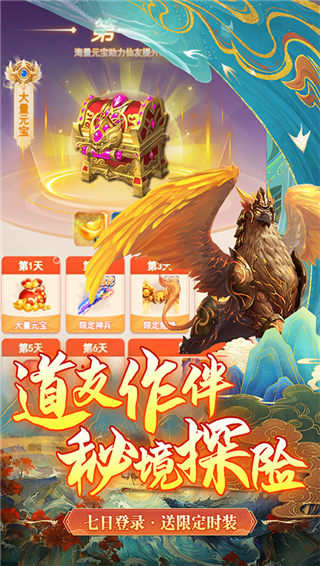 1、每日签到即可领取千抽道具,有概率获得稀有精灵和红颜。2、你可以挑战强力BOSS、参加跨服竞技对战,感受热血修仙乐趣。