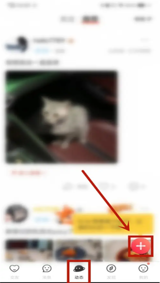 1、在本站下载好软件后,进入动态界面点击右上角+