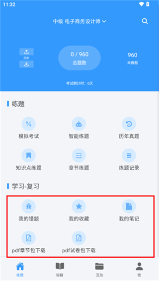 2、这里能看到各种练题板块,模拟考试、智能练题、历年真题等