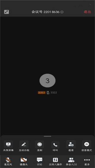 4、在会议中有许多的功能,如共享屏幕、互动白板、录制、呼叫、讨论等功能