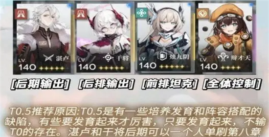 能攻能守还能控的均衡阵容,如果你拥有强力主C角色效率则会大大提高,没有也可以好好培养无妄,这个阵容将可以带领我们直入中后期章节。并且阵容中角色可替换性强,无论是爆发还是持续输出都能够很好的融入这个队伍。