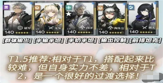 4、T1.5强度:破军(群体输出)、无妄(半输半坦)、白泽(半奶半坦)、陶朱公(输出控制)、刑天(前排坦克)