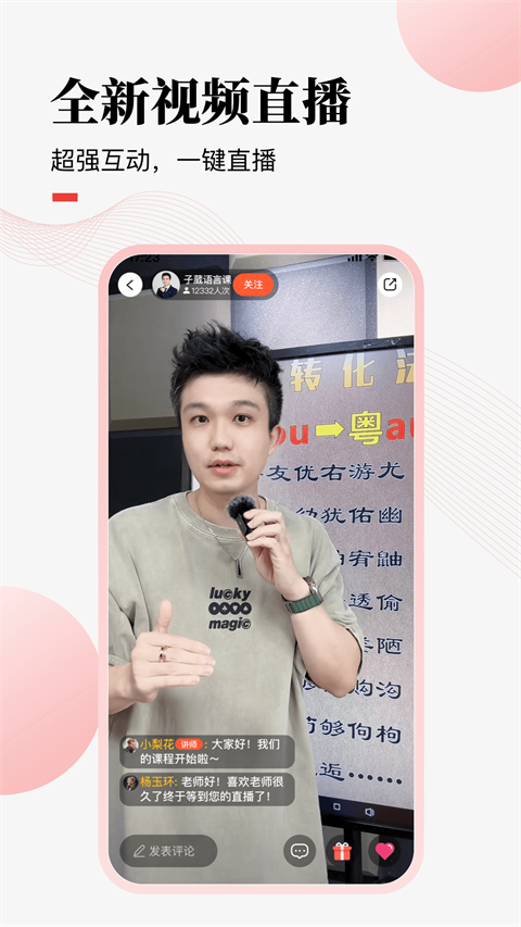 4、不只是直播工具,更是线上教育平台,吸引杨澜和车晓等明星讲师分享知识,支持十万人同时在线,让知识传递更便捷。
