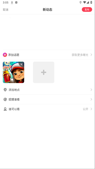 3、然后编辑动态的内容,还能添加图片