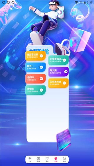 此外在壹深圳app中还内置了许多功能板块,深圳故事、Ai实验室、社区家园、智慧服务、深视新闻等等,用户可以根据自己的需求进行前往,尤其是AI是AI实验室,用户可以提出任何问题,AI都会迅速给你解答,当然了,你也能在社区家园中认识更多的趣味相投的朋友,如果你也喜欢看新闻的话千万别错过了。