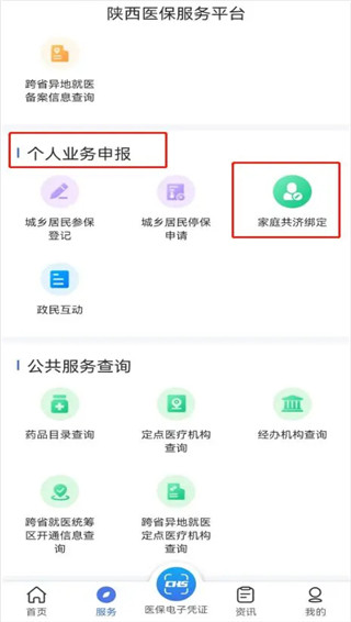 2、然后点击【个人业务申报】中的【家庭共济绑定】