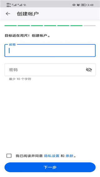 3、填写完相关信息之后,填写邮箱密码信息就能完成注册了。
