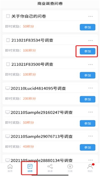 3、操作起来非常简单,只需参与调查问卷就能轻松获得积分。