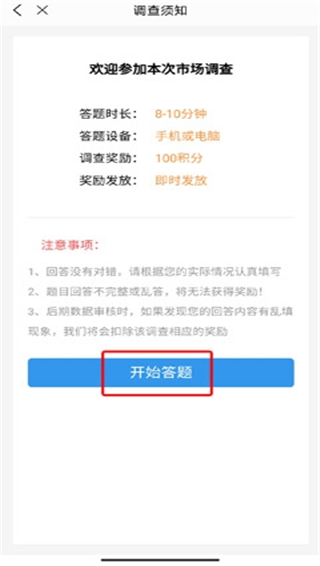 3、点击开始答题就能进行填写了,调查奖励也能直接看到